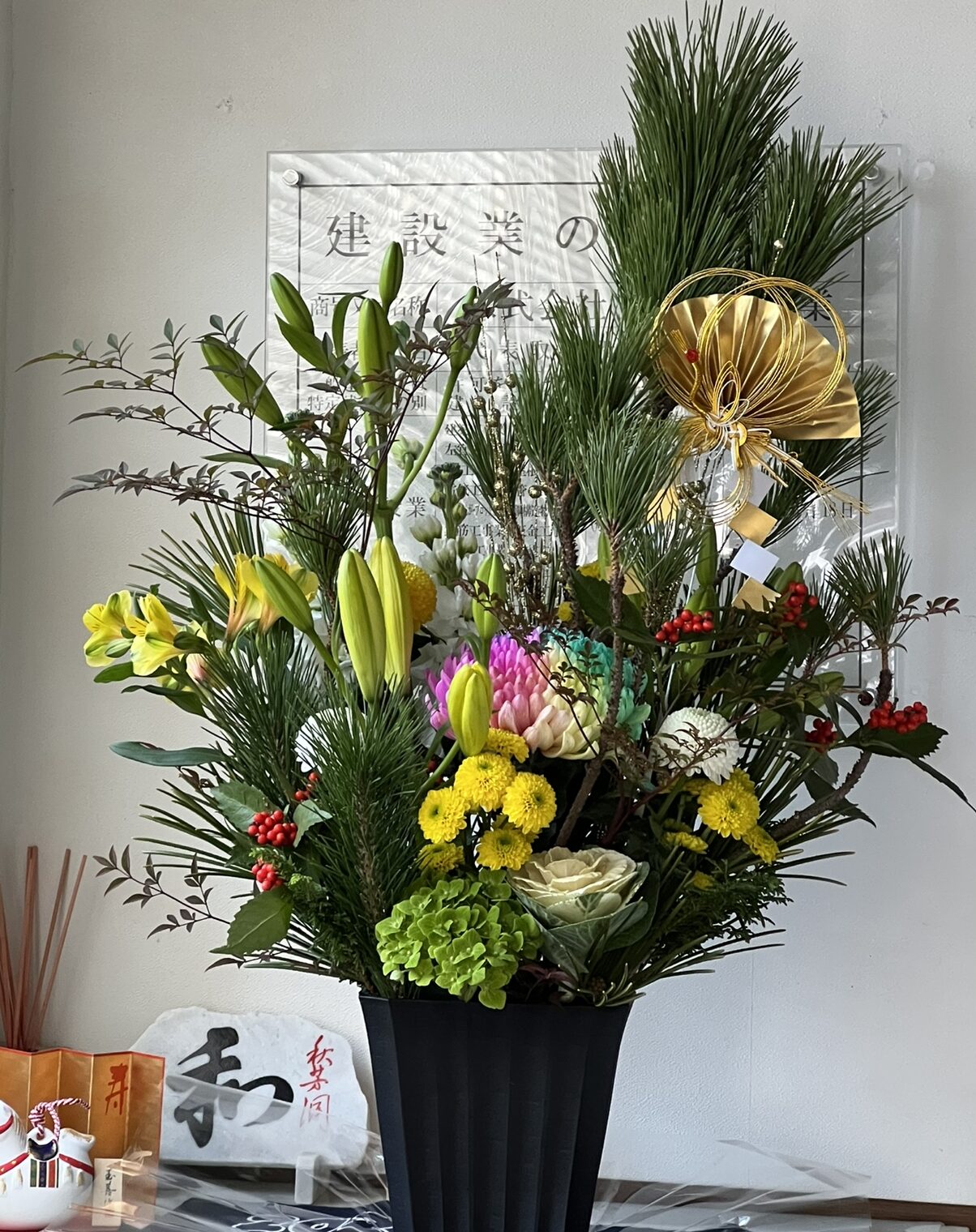新年のご挨拶と、各営業所のお正月飾り 投稿公開日:2026年1月8日 投稿カテゴリー:お知らせ 新年を迎え、今年も各営業所にお正月のお花を飾りました。 普段は工事や打ち合わせで慌ただしい営業所も、お花があるだけで、少し空気が和らぎ、 新しい一年の始まりを実感します。 お客様をお迎えする場所として、そして社員が毎日集まる場所として、 「気持ちよくスタートできる環境を整えること」も 大切な仕事のひとつだと、私たちは考えています。 新しい一年が、皆さまにとって実り多い年となりますように。 本年もどうぞよろしくお願いいたします。 株式会社ソーラー工業 社員一同 おすすめ お祭り日和☀ 2024年10月12日 ソーラー工業 女性ユニフォームがリニューアルしました! 2024年2月2日 お正月花 年神様とお客様を歓迎 2025年1月8日